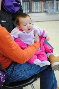 One of my mom friends from the library was kind enough to hold Samara while I read and sang to the kids.