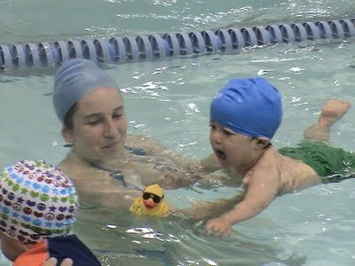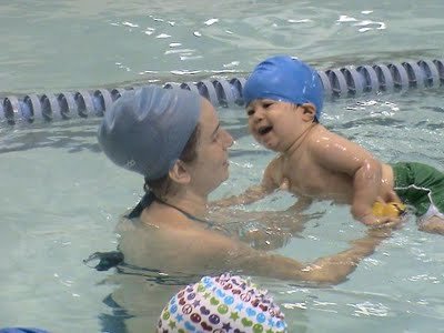 He even liked being dunked under water as the instructor sang the last line to the classic bubonic plague song "Ring Around The Rosy." That line (for those of you who don't know) is "They all fall down!" And with that he was submerged in chlorinated water.