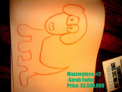 I waited an unbearable two minutes listening to him screaming in the next room. Finally, I couldn't take it anymore. I re-entered the living room with him still screaming. After several futile attempts to get him to draw with me, he eventually accepted my offer of a glass of orange juice. Meanwhile I created several masterpieces by my lonesome: