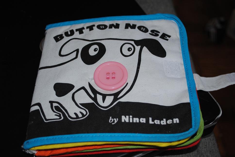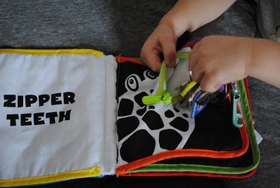 Today he unzipped my hoody a thousand times. Then I had an idea. I remembered this cloth book I bought for him a while back. Usually, I don't buy books in the store, I get them at stoop sales or as hand-me-downs, but this book was too cool to pass up.