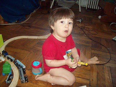 Ari will be two in eight days, and the destruction has already started. Wires he was once apathetic about, he is now pulling at, he approaches the table and throws everything onto the floor including the lap top, he walks brazenly into the kitchen, grabs the cat's water bowl and confidently dumps its contents onto the floor. When this is done he laughs and then says: