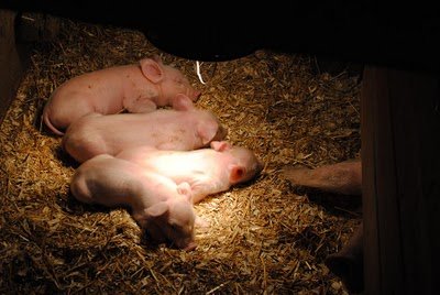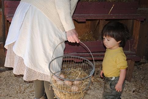 He must have spent half an hour washing and hanging laundry. Then he had a chance to see week old baby piglets, feed the chickens, and collect eggs!