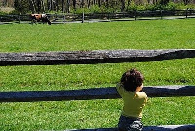 Ari loves animals. When we go into my parent's backyard, in Brooklyn, he asks if there are "Baas" (sheep) or cows there. I decided it was time to take him to a real farm so he could see animals in their natural environment.