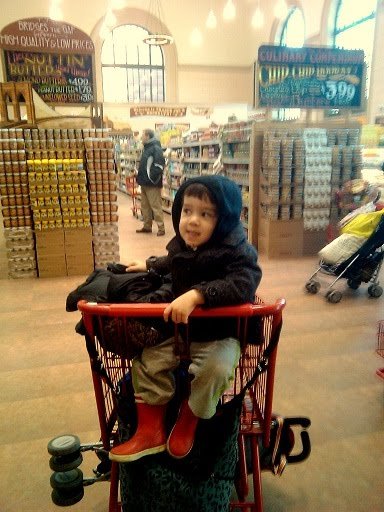 The cab ride to Trader Joe's cost us $9.00. When we got there, I was completely overwhelmed. There were so many aisles and everything was so cheap! Ari was pleased to simply sit in a grocery cart.