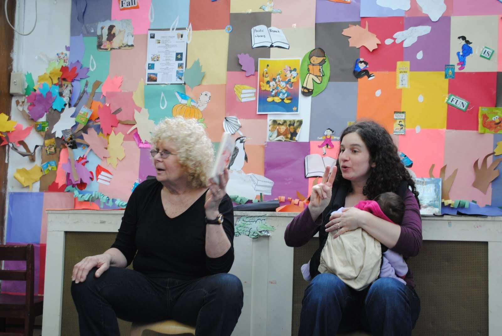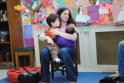 When I got to the library, Samara was cranky. Thankfully, she fell asleep in the moby wrap as I was walking around looking for books to read to the kids.