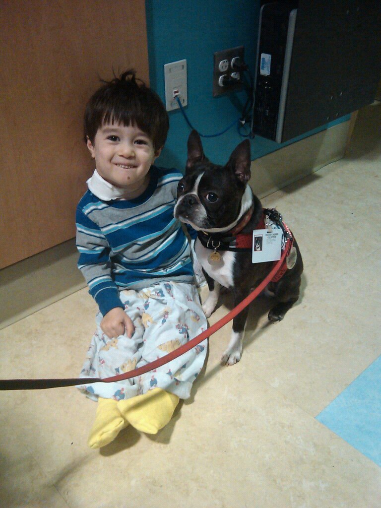 While Ari has been at the hospital he made friends with a therapy dog named Hudson: