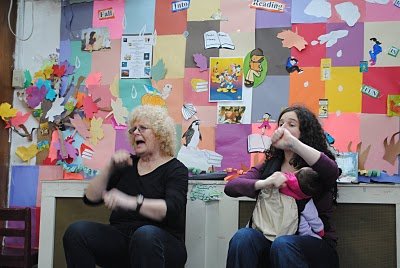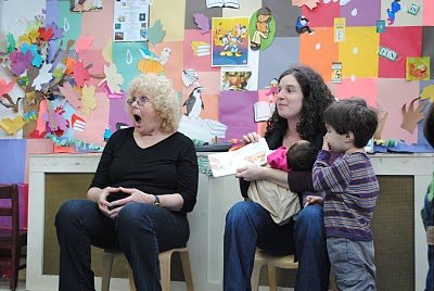 My friend Leah drove down to Brooklyn from upstate NY with her step-daughter Kinneret, age 2, to join in on the Story Time fun. She also took all the pictures of us reading, singing and being silly.