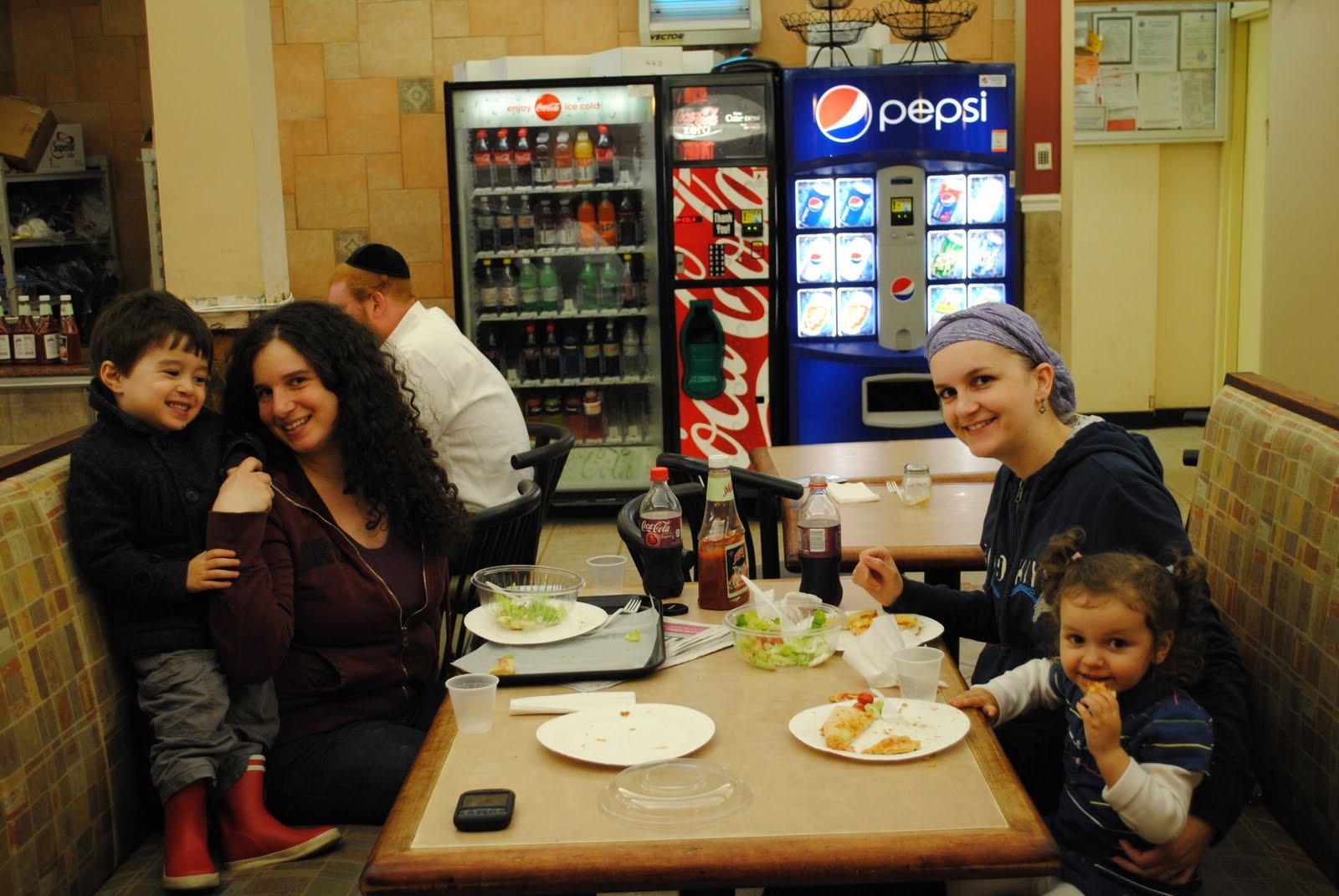 After Story Time ended, Leah and I drove over to Borough Park and had some delicious kosher pizza at Mendelsohn's while my mom watched Samara.