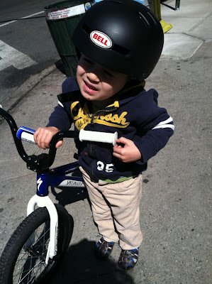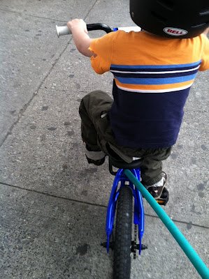 When I bought the bike, it had training wheels on it. Since getting the bike, I've been in and out of the bike shop, having the training wheels put on, and then taking them off. I was ambivalent about the training wheel situation, since I've taught kids to ride bikes before by just taking the pedals off the bike entirely.