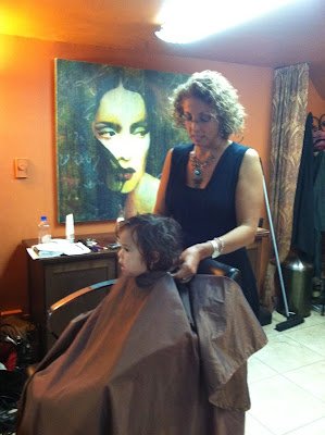 I was lamenting about my haircut woes on Facebook, when my Fairy God Mother, Kyle came to the rescue, she reminded me that Vardit cuts children's hair, and a reasonable price too.