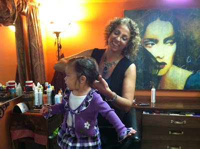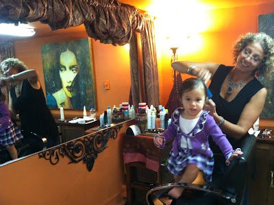 So we headed uptown to 102nd Street to visit Vardit for Samara's first haircut ever! I tried to wait as long as possible to cut her hair, but she's a curly girl too, and she needed a good trim and shaping.