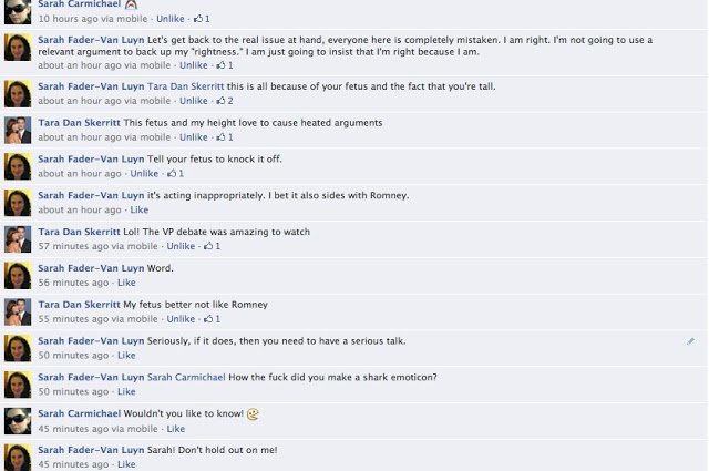 Debbie and I chose to mock the situation. We created the ultimate Facbook argument.
