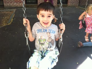 But here's the thing, if he goes on the swing, that means that I cannot sit down on the playground bench and space out. I have to do work. I am required to stand there with him and push him.