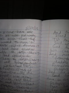 Ari wrote a story yesterday. As the Native Americans did, he recited his story aloud. My mom was there to record it: