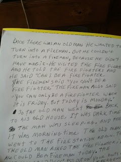 I felt it was important to document this momentous milestone (Ari's first story) here. So without further ado, I present The Old Fireman: