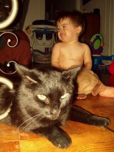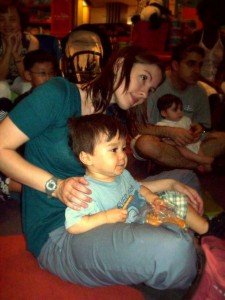 It was just too hot. In fact, it was so hot in my son’s room, even with the ceiling fan blasting and a fan directly pointing on him he was still unhappy. My boyfriend and I racked our brain for a solution. We took him into the living room with us where the air conditioner was limping along. I tried to have him sleep on my chest. He would fall asleep for a few moments and then wake up when one of the cats moved or jumped over the baby gate.