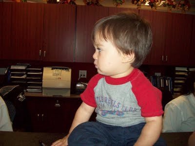 As I filled out the paperwork for registration my son sat on the counter spying on the receptionists...