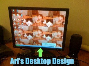 Apparently, I underestimated my toddler’s technology smarts. He was able to successfully change the desktop background on my computer. When I caught him, he had climbed up onto the computer chair, and was furiously clicking the mouse. He managed, in this process, to change the desktop background to this picture: