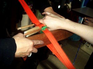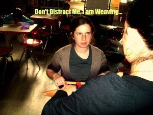 Back in the old days when Old Navy didn’t exist, people actually made their own clothes, they wove them. Today I was subbing for a 5th grade class and this afternoon they had a weaving workshop.