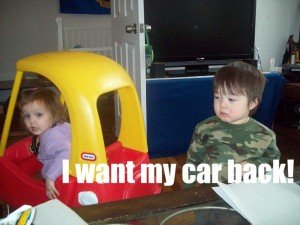 He had trouble sharing his favorite toy, the cozy coupe…