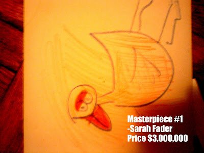 I waited an unbearable two minutes listening to him screaming in the next room. Finally, I couldn't take it anymore. I re-entered the living room with him still screaming. After several futile attempts to get him to draw with me, he eventually accepted my offer of a glass of orange juice. Meanwhile I created several masterpieces by my lonesome: