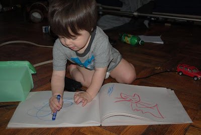 He seems to be getting it as he gets older, and he loves to draw so much I think that helps. Maybe 40% of his playtime. It is great that you get all these helpful ideas from your readers. Wow. We old school moms didn't have as much opportunity for feed-back especially in "the City"