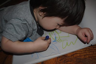 He seems to like the color "blue" and chooses a blue crayon first 90% of the time he is involved in an art project.