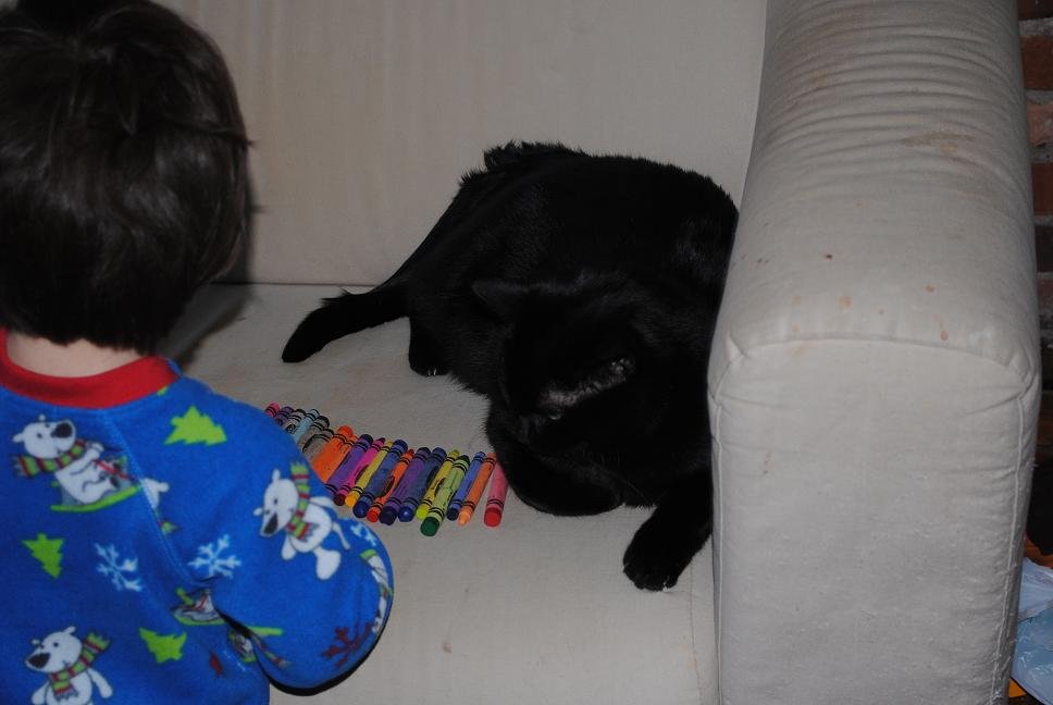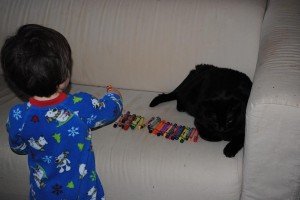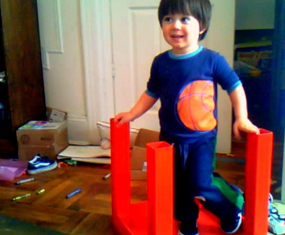 I’m used to starting out my mornings with tiny cars strewn all over the living room. However, the following activity was a first. Watch as Ari integrates Simon and Egreck into his vehicular plan.