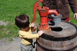The farm is set at the turn of the century so one can get a feel for what it was like to pump your own water and wash your own laundry by hand. Ari loved these activities.