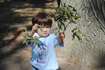 But it was not yet open. So we walked around enjoying some of the scenery. Ari played with some leaves.