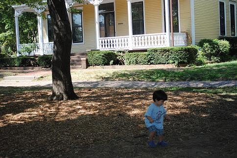 But it was not yet open. So we walked around enjoying some of the scenery. Ari played with some leaves.Then he ran away and found a stick.
