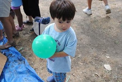 But, he was unimpressed.We tried to make a "dinosaur egg," (which means putting paper mache material on a balloon to re-create an enormous egg) but Ari loves balloons so much that the thought of putting paper mache on a balloon made him very mad.