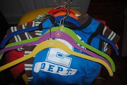 To be honest, I don’t bother to hang Ari’s clothes up. I mostly shove them in a drawer the minute they are out of the dryer. But recently I realized that when I do this, I have no idea what clothes he has. But when I hung his clothes up: