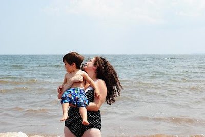 Now you may be wondering: Is that a maternity bathing suit? No it's not! It's a plus sized swim suit purchased from Walmart in Texas.The beach was great, and the water was warm! Ari loved it too.