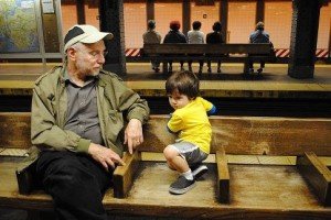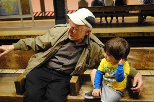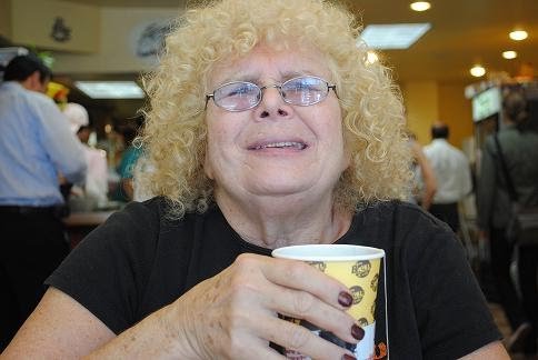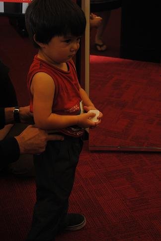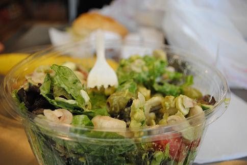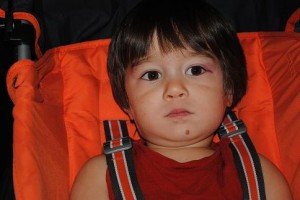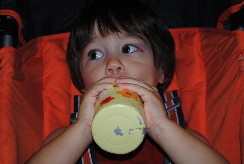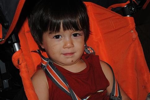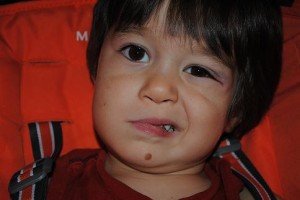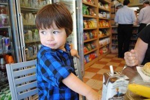 Shortly after this picture was taken, he bumped his head on the metal table in the deli and sustained an enormous bruise near his eye. Fortunately a E.R. doctor from the hospital was having a salad behind us. I asked him: