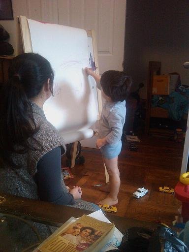 My great friend Donna was here, and in between drawing an elephant and two cats for Ari on his easel: