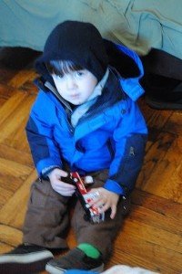 When it came time to go to the library, Ari was so excited, he protested less than usual when I put on his winter coat.