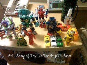 I don’t know what day it is. I barely know what time it is. Everything is running together. People’s faces are blurred. I can’t tell one doctor from another. They all look the same. We’re in the hospital. Ari is in the hospital. I write those words and I don’t believe them. It’s surreal.