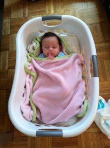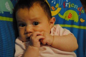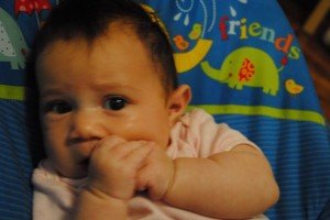Yesterday we went to the playground, which was extremely hot. Samara was sleeping in the Moby Wrap, so one side of her face got sunburned. She was really cranky when we got home, and I wanted to do something to soothe her sunburn, poor thing. I made the mistake of looking on the internet for treatments for baby sunburns. The first thing I saw was “baby sunburn, when to call a doctor.” Naturally, I freaked out, and called the doctor. Of course, I had to leave a message for someone to call me back. In the interim, I called my friend Donna, who has five siblings and has witnessed many an ailment.