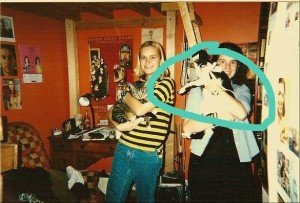 “Oh! He’s not our cat, he’s my parent’s cat…uh…Dusty.” I was clearly not awake, my hair was sticking up, and I was wearing a gross tee-shirt and pajama pants.