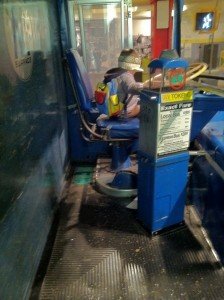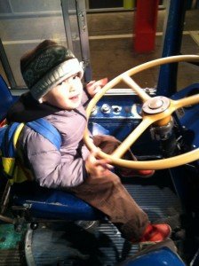He really loves the bus…