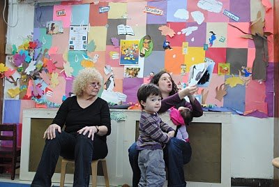 My friend Leah drove down to Brooklyn from upstate NY with her step-daughter Kinneret, age 2, to join in on the Story Time fun. She also took all the pictures of us reading, singing and being silly.