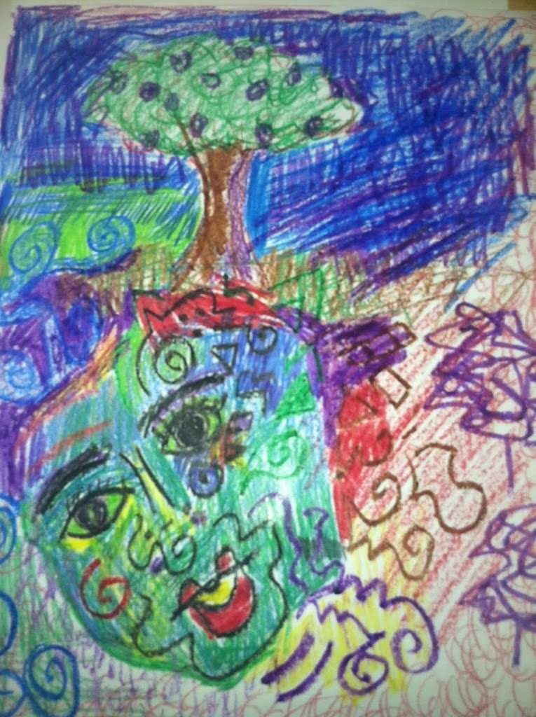 I subbed for Pre K the other day, and I was surrounded by four-year-olds, so I drew this with crayons: