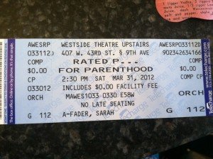 Last Saturday I had the opportunity (thanks to MamaDrama and Playtime!) to see Rated P for Parenthood, a musical about what parenthood is really like. While I saw the play, Ari got to go back to Playtime again!