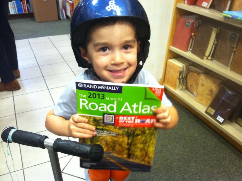“Ohhhh!” He said with a fascinated expression. He spent the rest of the short taxi ride carefully examining the maps in the atlas, and tracing his finger along the thin blue and pink lines and over the Interstates.