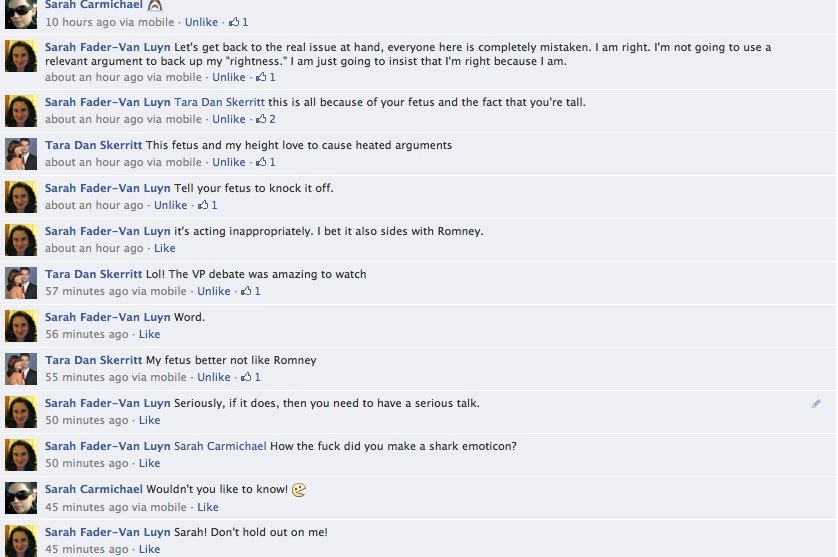 Debbie and I chose to mock the situation. We created the ultimate Facbook argument.