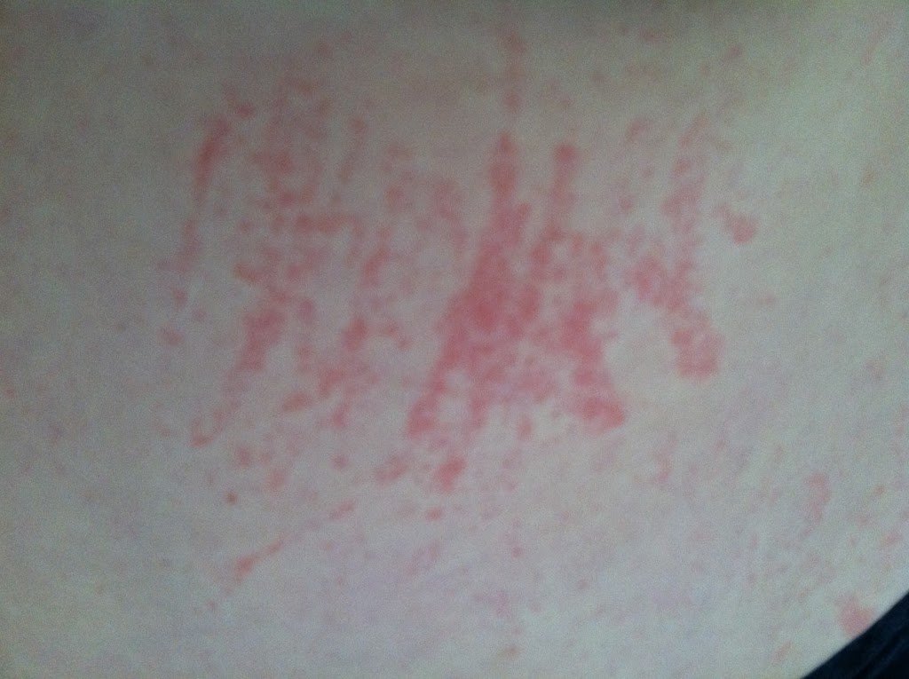 Later that evening, I noticed a strange rash on my stomach. A while later, the rash spread to my neck.