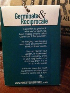 Another cool thing about Mine is Yours Apparel is they include a packet of seeds with each tee shirt you’re sent in the mail!