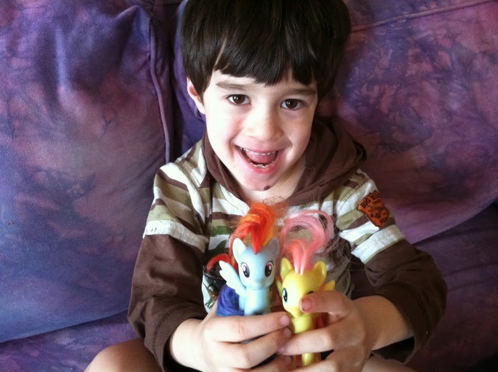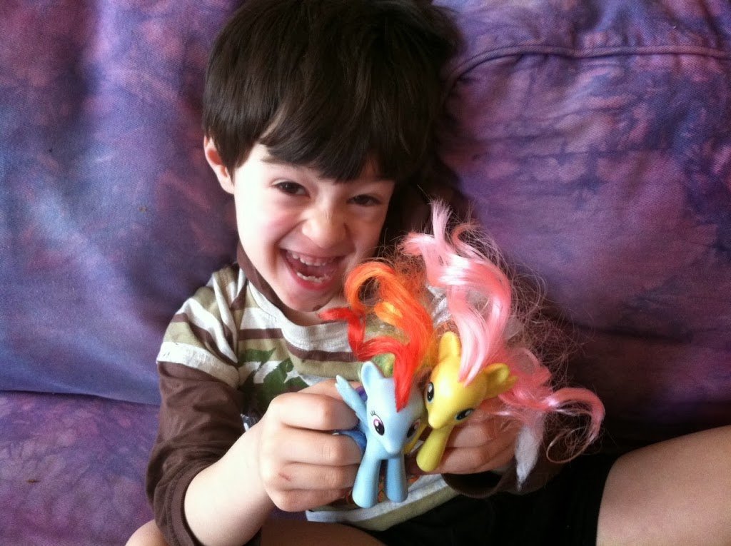 He asked to watch episode after episode of My Little Pony all the while holding the tiny pony figurines in his lap.