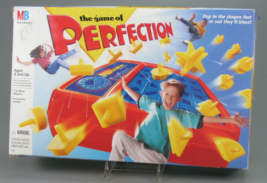 The game called itself “Perfection” but it was clearly not meant for children. This game should have been used in a police interrogation room to get a witness to crack under pressure. This is not a game, it is a torture device.